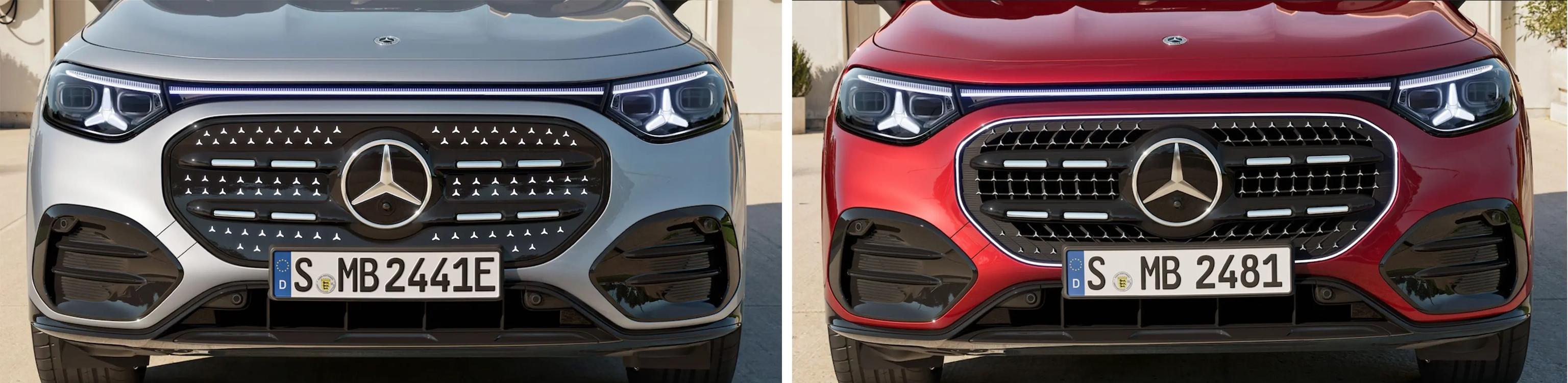 从外观来看,纯电版和燃油版几乎没有变化,贯穿式LED灯带、标志性的三叉星徽日行灯都没缺席。不过仔细看,纯电版中网是封闭的,上面布满了可发光的星辉点阵,晚上辨识度很高;燃油版则保留了开放式格栅,镀铬装饰加上发光饰条,传统中带点新潮。